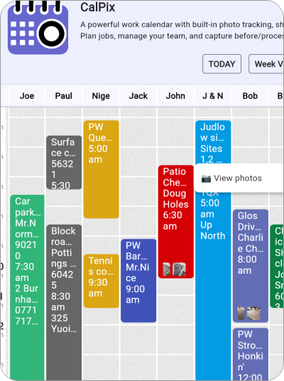 Plan jobs, manage your team, send reminders and capture before/process/completion photos - all in one place.